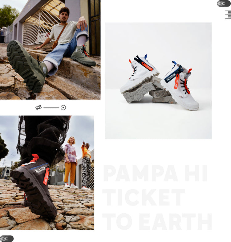 The planet is your playground, and you've got a ticket to ride. The ‘Ticket To Earth’ campaign (re)inspires exploration with truly multi-terrain footwear for the Spring/Summer 2022 season ahead. Palladium extends its appeal from the city-dweller to the experience-hungry escapists exploring undiscovered rural landscapes around them. Rediscover the places and experiences left unexplored with the fresh new styles. #DareToDiscover #TicketToEarth