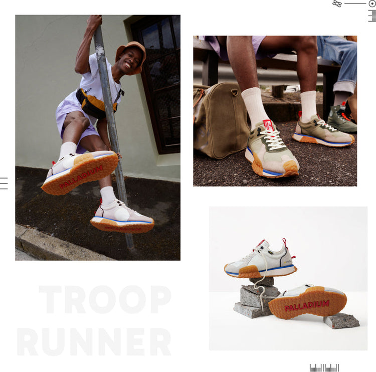 Kick up a storm in this colorful, edgy Troop Runner sneaker made from a blend of materials for optimum style and comfort. Inspired by army trainers, designed with eye-catching bold look.
